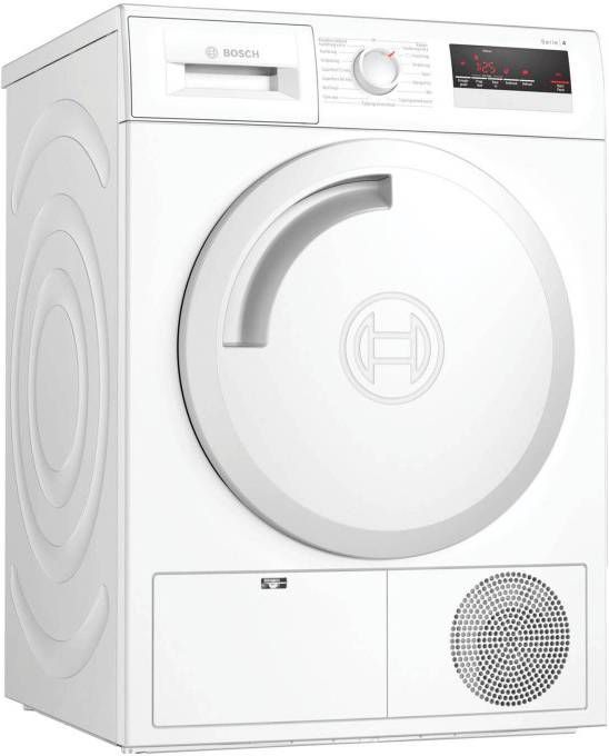 Bosch WTN83202NL condensdroger met energieklasse B, elektronische besturing en een maximale belading van 7 kg. Deze condensdroger heeft de beschikking over AutoDry, dit betekent dat de droger automatisch stopt wanneer de ingestelde droogtegraad is bereikt. Ook heeft de WTN83027NL speciale programma's voor: Wol finish, mix, Tijdprogramma warm, Tijdprogramma koud, AllergiePlus, Sport, Superkort 40, Shirts 15 en Fijne was. Het speciale allergieprogramma 'Allergieplus' is extra zacht voor je kleding en droogt op een hogere temperatuur waardoor allergenen geen kans maken. Ook is deze machine geschikt voor onderbouw. Tevens beschikt de droger over een anti-kreukfase: 120 minuten, Sensitive trommelbinnenwand en TouchControl toetsen. Ook kent de WTN83202NL een groot en overzichtelijk LED-Display voor resttijdweergave en 24 uur eindtijduitstel, programmastatus en extra functies. Een antivibratie design, Easyclean filter voor de condensor, de kinderbeveiliging, trommelverlichting, signaal bij einde programma maken 'm extra compleet. En het lage geluidsniveau van 65dB maken ‘m aangenaam stil.Anti-kreuk faseLichte trommelbewegingen na afloop van het programma (duur 120 min). Voor minder gekreukt wasgoed en dus minder strijkwerk.Sensitive trommelbinnenwandHet Sensitive Drying-systeem van Bosch is een perfect samenspel van de innovatieve grote rvs trommel, gegolfde Soft-wasmeenemers, een temperatuur optimale luchtstroom en de aflopende gladde binnenkant van de deur. Dit in combinatie met een uitgebreide programmakeuze en comfortabele bediening.TouchControl-toetsenDe touchControl-toetsen zijn gemakkelijk te gebruiken: slechts even aantippen is voldoende om de gewenste functie te kiezen. Een LED en een geluidssignaal bevestigen het selectieproces.